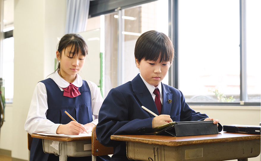 中学受験に向けた取り組みとして、1年生から「学力の基礎・基本の徹底」に重点を置いた教育システムを構築しています。この土台の上に、学年ごとの発達段階に応じた指導や個別の学習サポートを行い、子どもたちの進学に向けた力を着実に育てています。