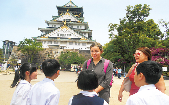 これまで学習してきた英語の力を校外で活用し、より実践的なコミュニケーションスキルを身につけることをめざします。海外の方との交流を通じて異文化理解を深めるとともに、日本や大阪の魅力を英語で伝えるプレゼンテーションに挑戦し、発信力を高めます。