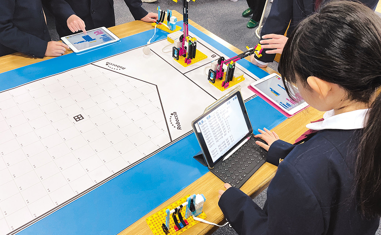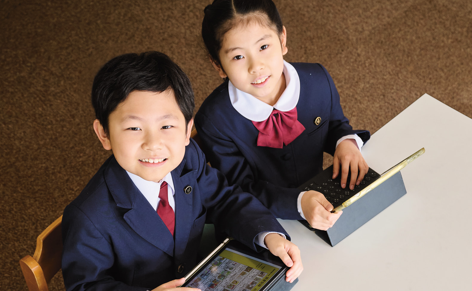 進化する情報化社会において、必要な情報を的確に収集、活用し、発信するといったICTスキルが重要です。持ち運びに便利な1人1台のタブレットパソコンを各教室に備え、1年生からコンピュータ教育を実施。基本操作から始まり、インターネットやソフト活用などの技術を深めていきます。教室には電子黒板を設置し、ICTを活用した密度の濃い授業を実践しています。また、4~6年生のクラブ活動では、最新教材を用いたロボットプログラミングに取り組んでいます。