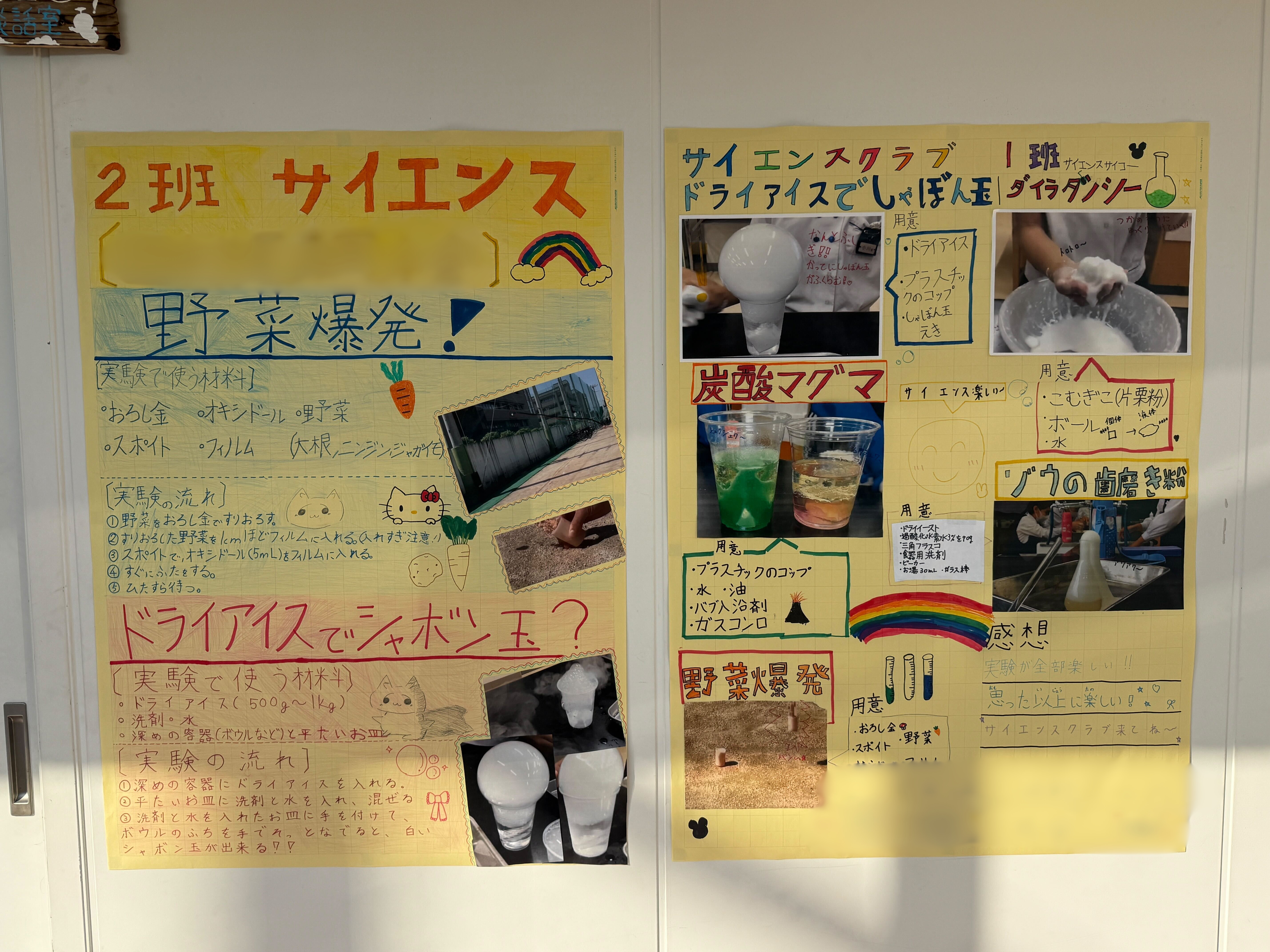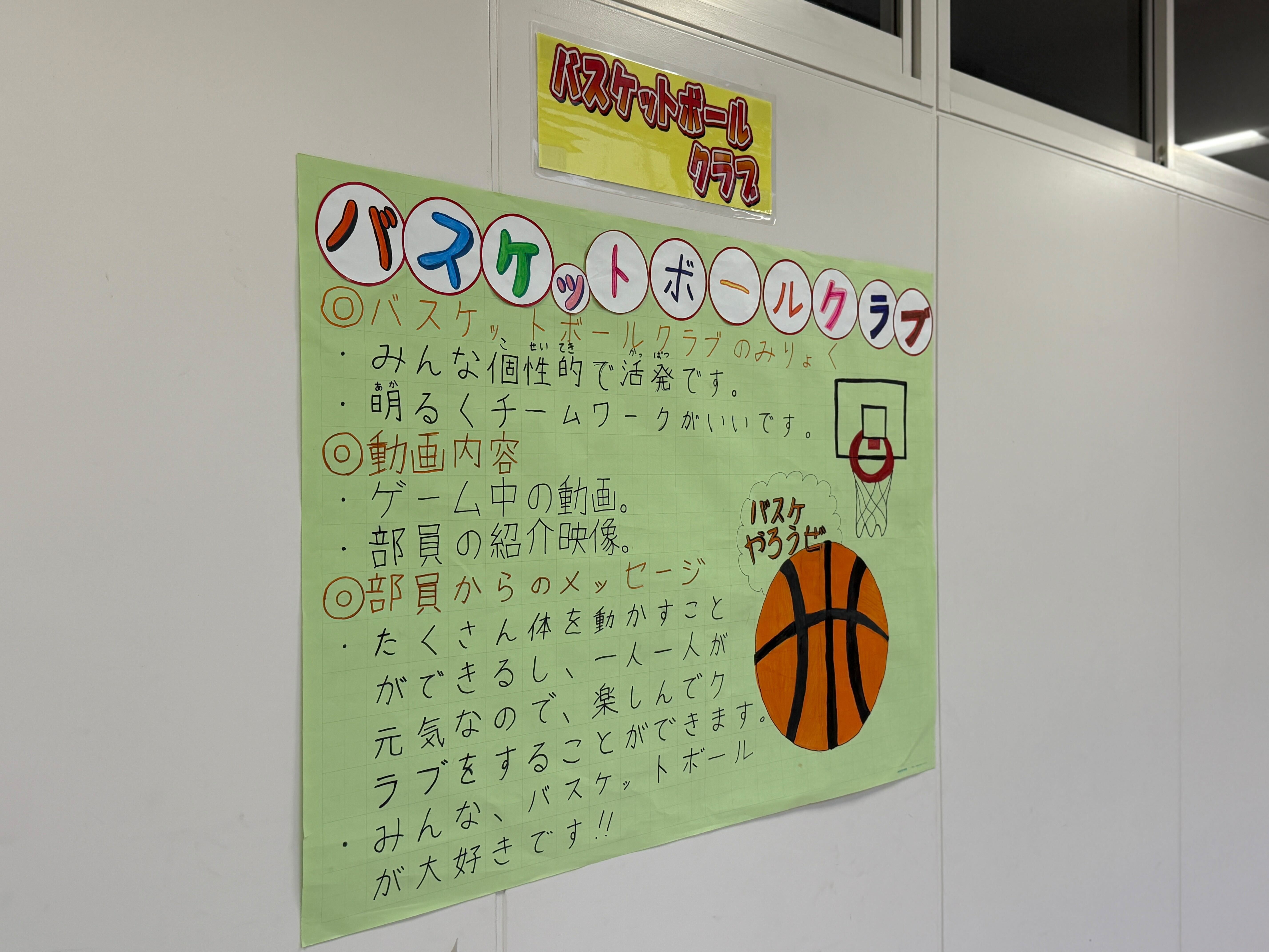 器楽合奏クラブ・サイエンスクラブ・手芸クラブ・伝承クラブ・ドッジボールクラブ・バスケットボールクラブの創意工夫がなされた展示がされています。