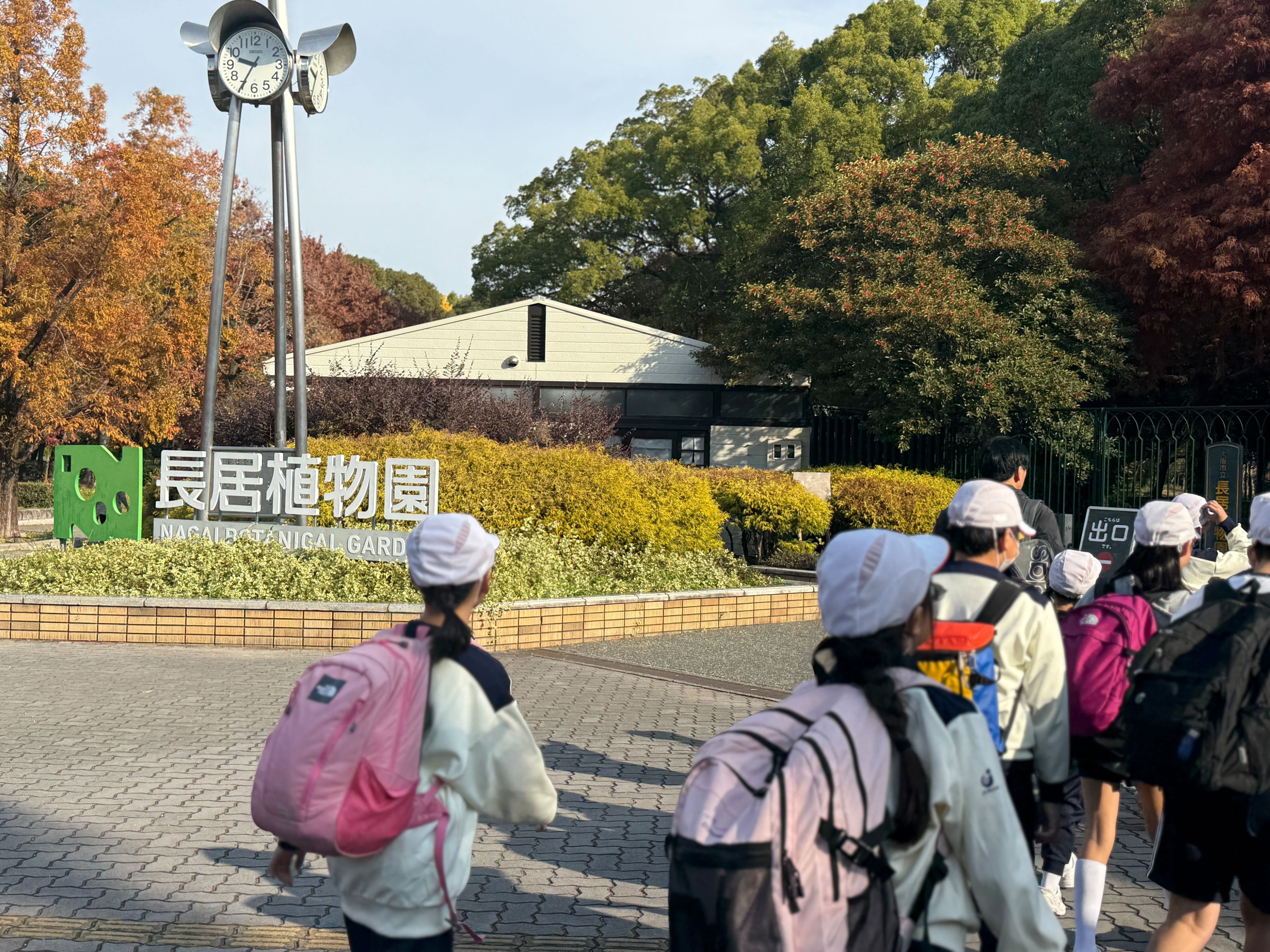 長居公園まで徒歩で移動し、長居植物園では、園内のチェックポイントを周りながら探索しました。また、「ボディーアート(人文字などで表現し、写真を撮ってもらう。)」を完成させ、最後にクイズに答えるとゴールできます。