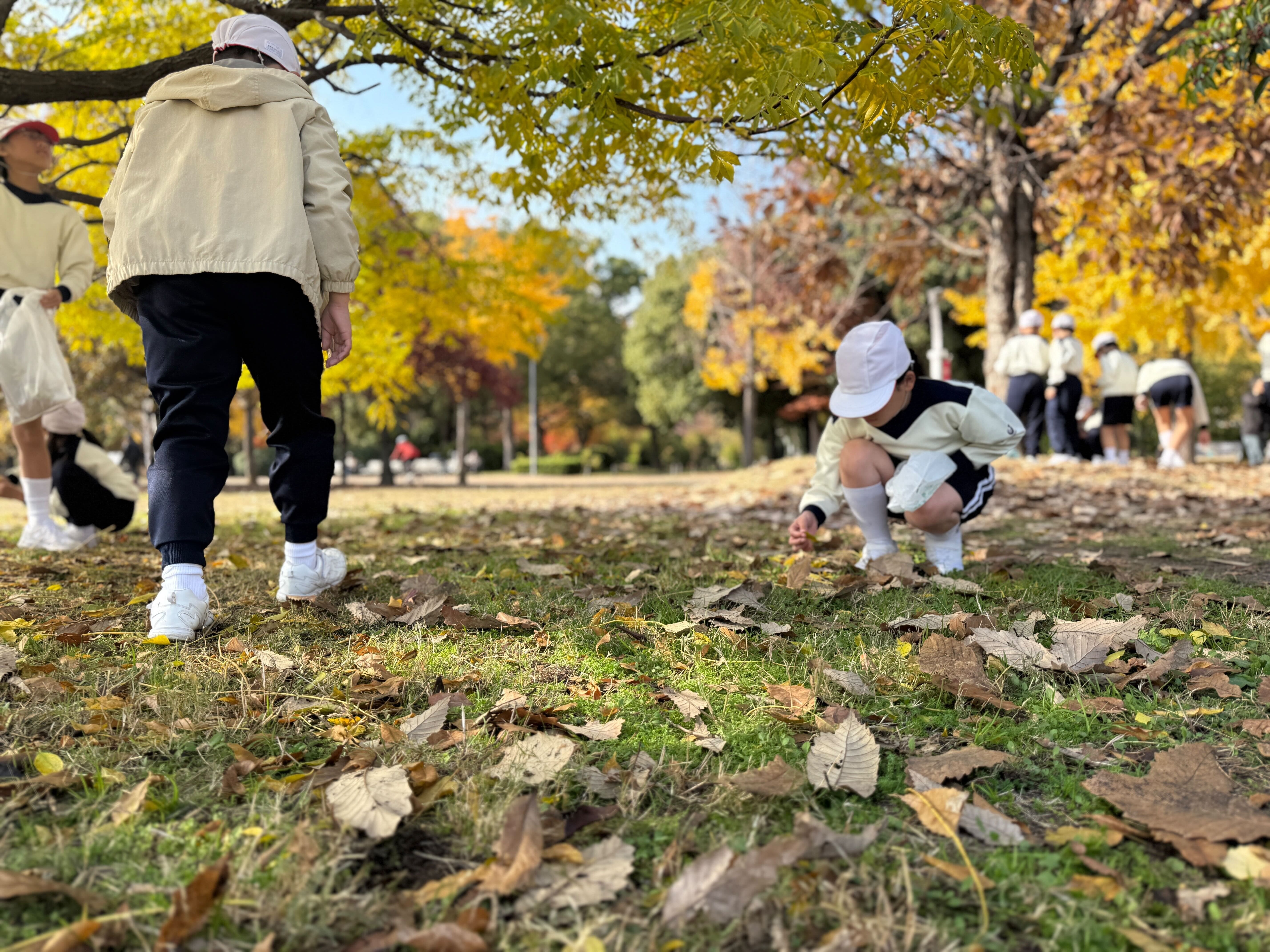 たてわり活動班長交代式で、長居公園に行ってきました。6年生が班長を担当するのは、この日が最後となります。12月は5年生の練習期間、3学期からは5年生が班長の仕事を任されます。この「たてわり活動班長交代式」は、班員同士の絆を深め、今後の活動をより円滑にするために行います。