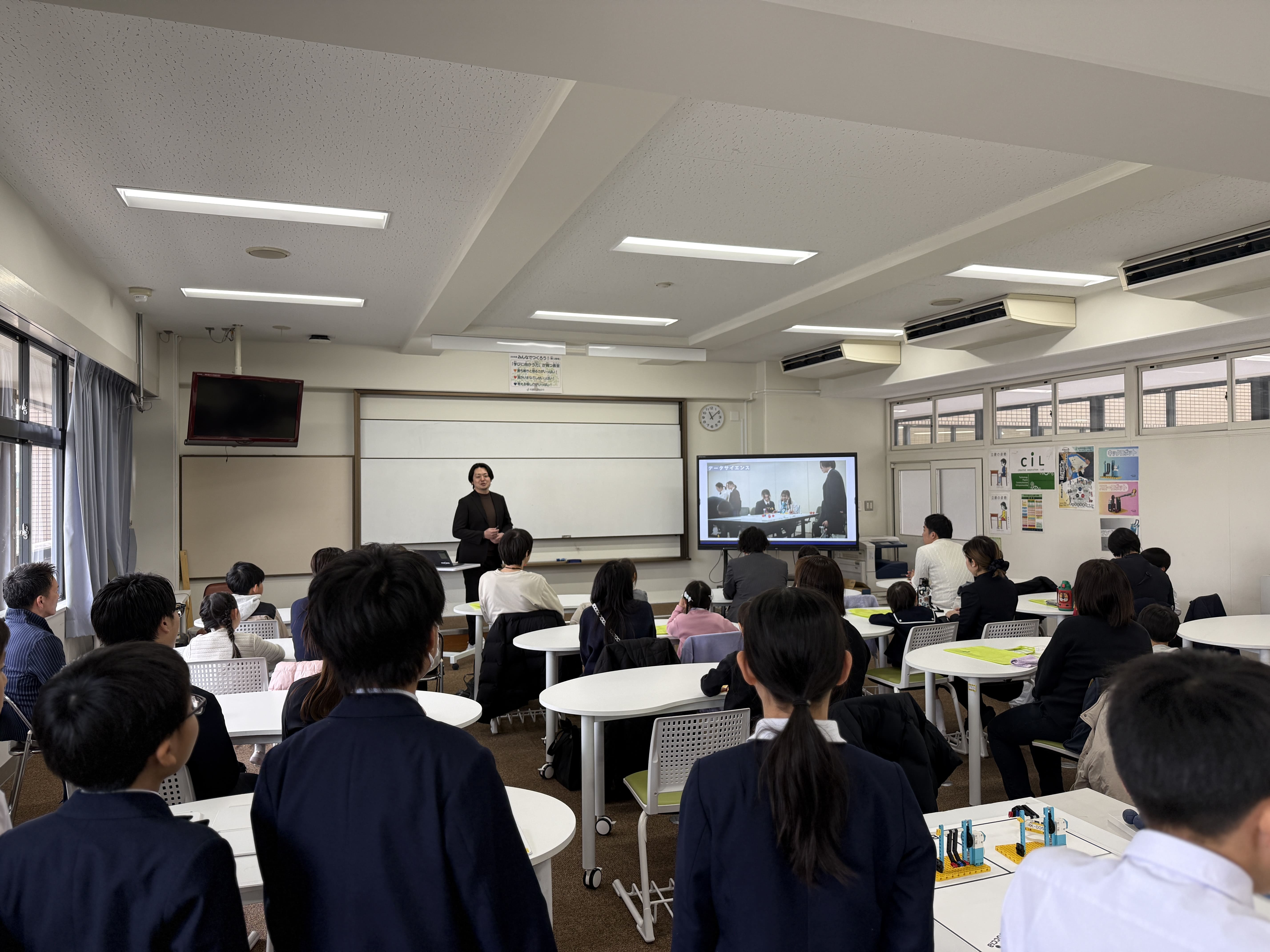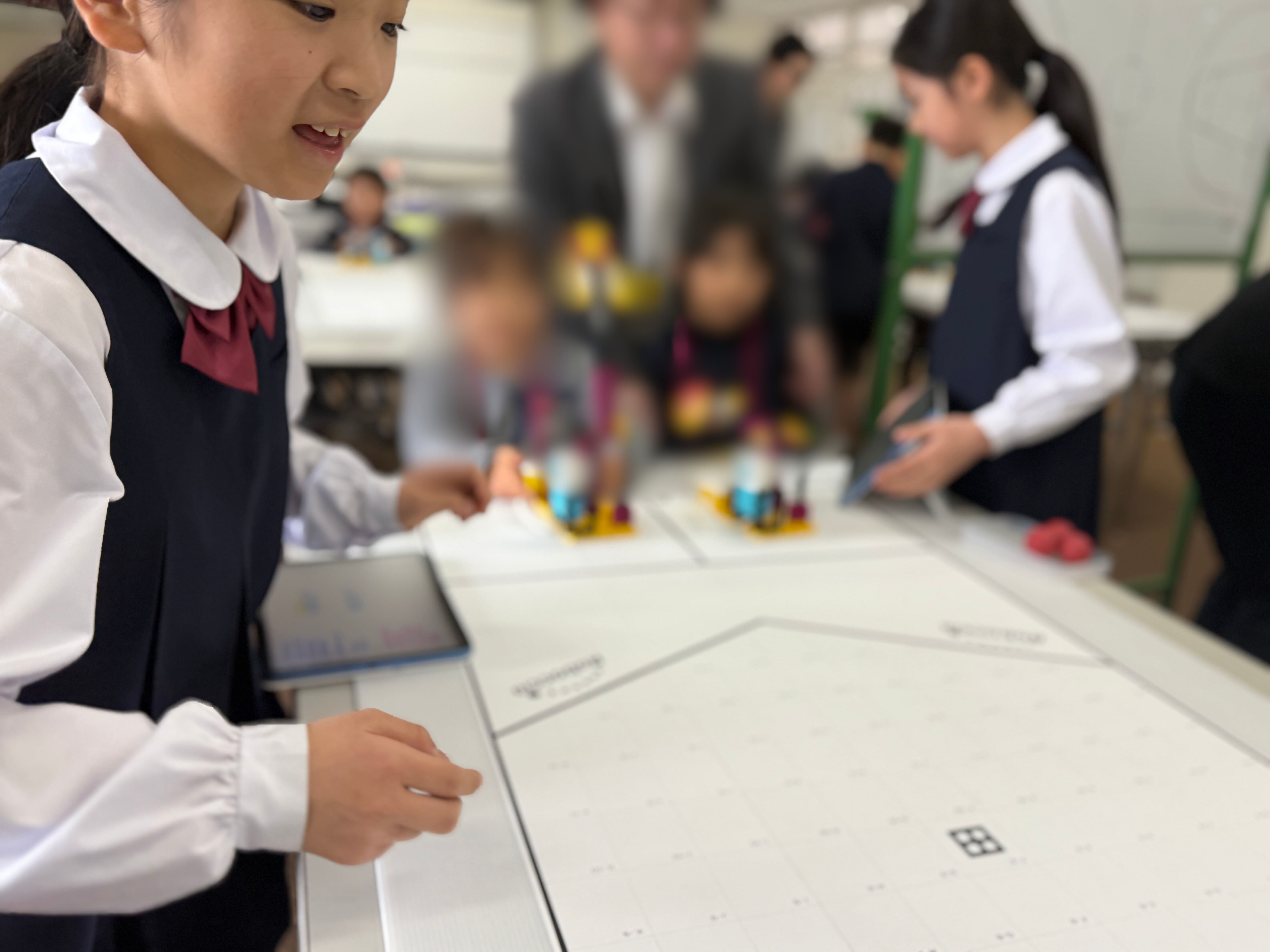 1年生と「iPadでのゲーム作り」、3年生と「蚕の糸取り」、4年生と「Roboccia®」を体験していただき、小学校で遊びながら本校での学びをイメージしていただきました。