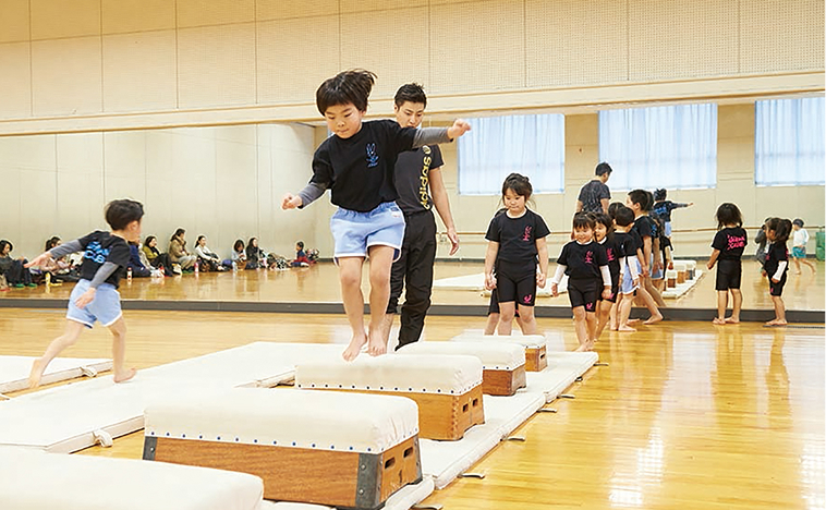 子どもたちの能力を伸ばす50年の指導ノウハウを生かし、向上心を育てます。平均台・マット・とび箱・鉄棒などの運動を通じて、基礎運動神経やバランス感覚、基礎体力のアップをめざします。