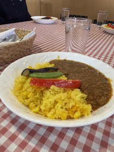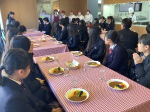 中3生は「宝塚カレーグランプリ2024」で優勝した「トロッピーカレー」を美味しくいただきました。