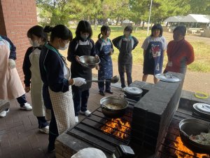 幼児教育コースは羽衣青少年センターにて、午前中は野外炊さん。午後はレクリエーション指導法を学びました。